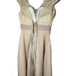 Warm Notices Champagne Lace & Chiffon Cocktail Dress Size 6 Elegant V-Neck