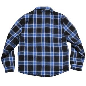 Rugged warmth meets casual comfort in this blue and black plaid flannel shirt jacket by Jachs New York. Crafted from a sustainable cotton blend, it features full sherpa lining, chest pockets, and a classic fit—perfect for layering through colder seasons or wearing as outerwear on crisp days.