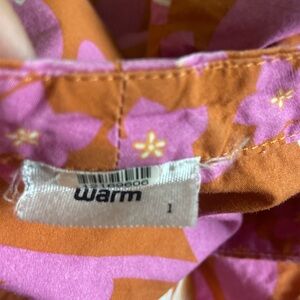 Warm Sierra Floral Pink Tiered Midi Dress Ruffle Trim Cotton Poplin Sz 1