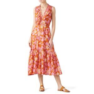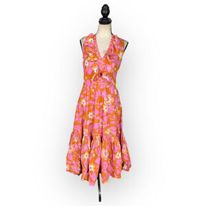 Warm Sierra Midi Dress Women's Size 3 Pink Orange Floral Ruffle Sleeveless RTR