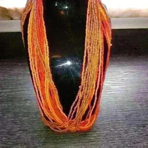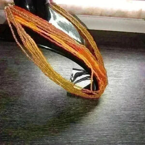 brand new beautiful multi-strand seed beaded necklace. women's necklace brand new with tags. orange brown and red with a lobster claw class. these colors complement any outfit. I consider this necklace beautiful African inspired Beach inspired necklace. 18 in