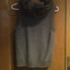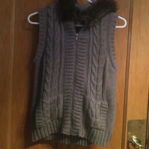 Warm gray vest with faux lined hoodie. Worn a few times, like new. Super cute and cozy. Size: Medium