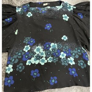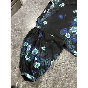Warm Women's 100% Silk Floral Balloon Sleeve Boxy Fit Top Black Sz 2/M. Condition is Pre-owned.