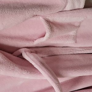 Beautiful pink L. L. Bean robe with two exterior pockets, looped belt and interior tie. Measures 48" from collar to hem. Gently worn.