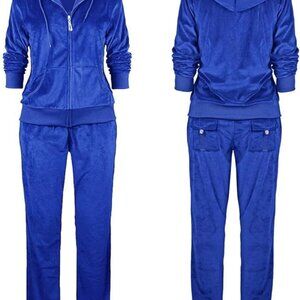 Warm Women's Two-Piece Jogging Suit - Velour Hoodie & Sweatpants | Royal Blue