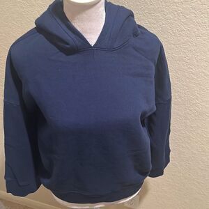 Warm Women's XS Bell Sleeve Hoodie Sweatshirt Solid Blue Elevated Basic Simple