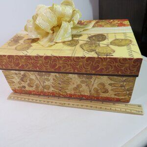 Warm Yellow & Red - Orange Gift Box with wired ribbon bow Keepsake Box