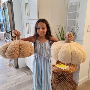 Warm and Cozy NWOT tan and cream plush pumpkin set pillow plush