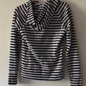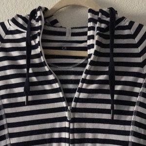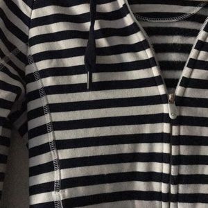 Navy and white stripped jacket. Zip-up, hoodie!