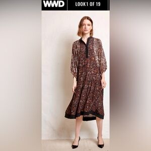 Gorgeous mixed floral prints with contrasting trim and tiered flowing skirt brimming w boho charm & the elegance of designer detail.