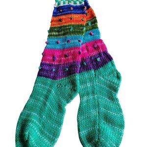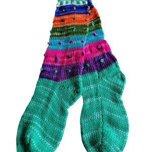 Handmade, warm socks woven from natural wool, dyed with traditional plants for unique and eco-friendly colors. Each pair is crafted using ancient weaving techniques, ensuring softness, warmth, and durability. Perfect for cold days, to wear around the house, with boots, or simply as a comfortable and authentic accessory. Made by Peruvian artisans in Cusco.