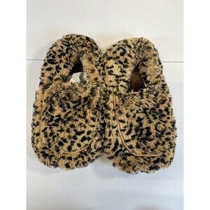 Warmies Woman's Microwavable Fuzzy Slippers. Leopard Print. One size Up to Sz 9