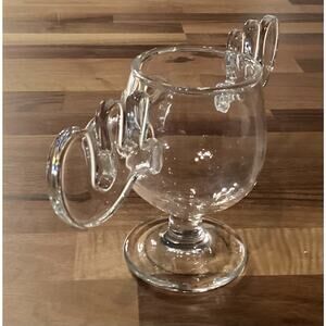The Warner Bros BULLWINKLE MOOSE Glass Clear Cup Mug is a collectible drinking glass featuring a figural design of the popular cartoon character Bullwinkle the moose. Made of clear glass, this original Warner Bros product is perfect for enjoying hot or cold beverages on any occasion. With a nostalgic theme of cartoons, TV & movie characters, and animals, this cup mug is a unique addition to any collection for fans of the Rocky & Bullwinkle franchise.