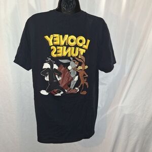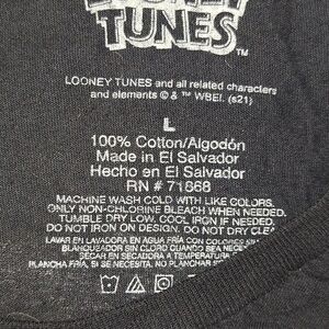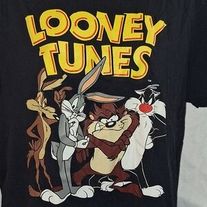 Classic black tee with Looney Tunes logo. Comfortable cotton fabric. pit to pit size is 21" top of shoulder to bottom hem is 29.5 " bundle more items for bigger deals Bin-145