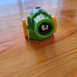 McDonald's collectible Babs with basketball, Tasmanian Devil in heroic costume, and Marvin the Martian as a cannon (semi-rare). Babs still moves on the little platform and I can't recall how the cannon worked, LOL. These have been in storage tub for years (wrapped in paper). Pet friendly home but kept in spare closet in storage tub. Wood background is dining table, not the floor.