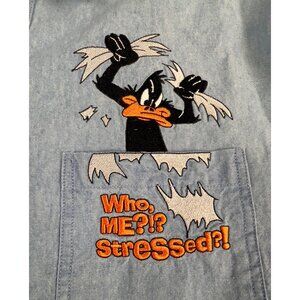 Warner Bros. Daffy Duck Button Down Shirt Men’s M “Who Me Stressed” Looney Tunes