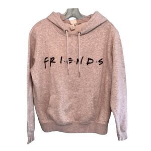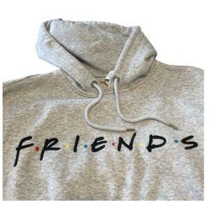Warner Bros FRIENDS Gray Hoodie Sweatshirt for H&M featuring a Graphic Design Screen Print of the FRIENDS TV Show Logo. Soft Fleece Sweatshirt with a graphic print design at the front and a jersey-lined drawstring hood. Kangaroo pocket, dropped shoulders, and long sleeves. Ribbing at cuffs and hem. Soft, brushed inside.