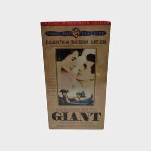 A timeless classic from the golden era of Hollywood, this "Giant" VHS celebrates its 40th anniversary. Featuring a star-studded cast including Elizabeth Taylor, Rock Hudson, and James Dean, this Warner Bros. Classics edition offers a widescreen viewing experience. A must-have for collectors and those who appreciate cinematic history.