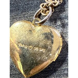 Keywords: Warner Bros, locket necklace, heart pendant, vintage jewelry, gold tone, kisses design, 1998, collectible, keepsake, sentimental, charm necklace, retro, novelty jewelry