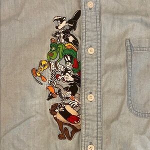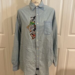 Warner Bros Studio Blue Casual Button Down Shirt Embroidered & Effortless