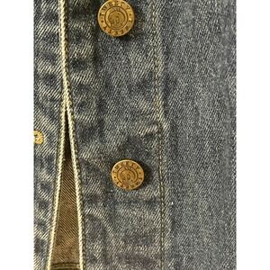 The jacket comes with a button closure and has solid pattern design. It is a short-length basic jacket with cotton lining material. The jacket is embroidered with Tweety Bird's image and has accents that make it more attractive. This jacket is perfect for a casual occasion, and it's available in size small.