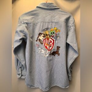 Warner Bros. Vintage Looney Tunes Striped Denim Button Down Shirt No Tags in gently used condition please see measurements for size