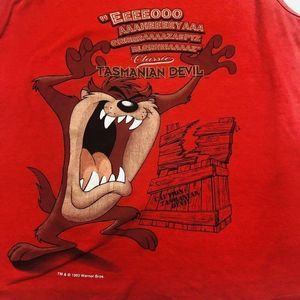 Vintage Warner Bros Looney Tunes Tasmanian Devil Red Graphic Tank Top Size Large
