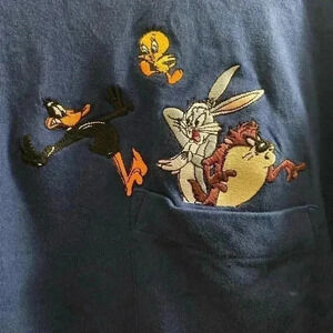 Warner Brothers Lonney Tunes T-Shirt blue Large with front pocket