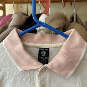 Warner bros Tasmanian Devil Polo Shirt Size Medium Pink White
