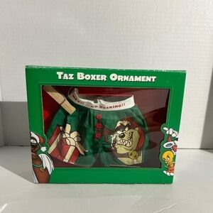 🎄Warner brothers NWT, VINTAGE LOONY TOONS, Tasmanian devil boxer shorts, Christmas ornament. Says at top of waist band “ HEY !!… NO PEEKING !!” Vintage & RARE purchased at Warner Bros. studio store.