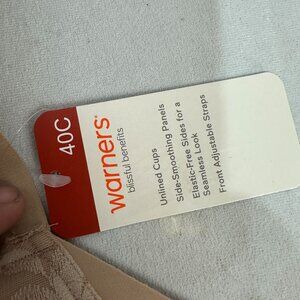 Warners Blissful Benefits Underarm Smoothing T-Shirt Bra 40C Beige Lace Pattern
