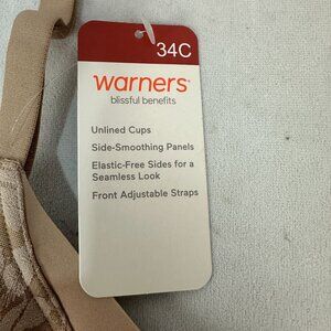 Warners Blissful Benefits Underwire Unlined Smoothing T-Shirt Bra 34C Beige Lace
