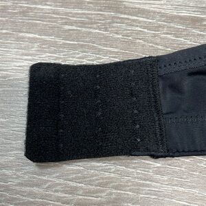 Hook-and-eye closure secures at back with coated metal hardware. See Fitter's Comments below for hook count.