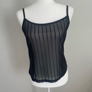 Warner's Vintage Sheer Black Striped Romantic Camisole Lingerie Tank Top Sz L