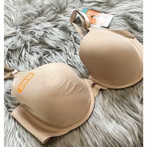 This Warner's women's bra offers underarm-smoothing comfort and support with its underwired design. It is available in size 34D and a solid beige color. The bra features a T-shirt style and is made of nylon material.