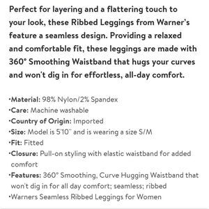 Warner's Women's Seamless Ribbed Leggings Size S/M