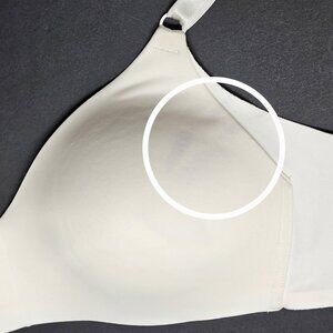 This brand new bra with tags on has a barely noticeable few blueish marks in left Breast side, I couldn't even picture it better but it's fair you know before you make a choice.