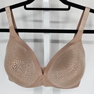 Warners Womens Sz 38D Lightly Lined T Shirt Bra Beige Gold Snakeskin Print
