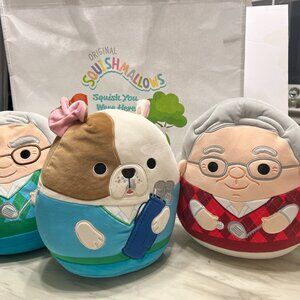 This RARE set of 3 Squishmallows is very rare! You'll get Warren Buffett, Charlie Munger and Omaha the Dog. Also included is the over sized gift bag that they came in.
