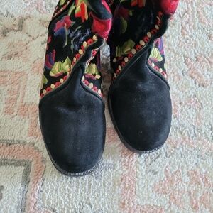 Show off your personality with our most unique multicolored pair of embroidered boots! Handmade with top-quality Italian suede, our limited edition Mongo Longo takes you to an exclusive ride across the globe. Each pair is crafted to perfection. Fits true to size. Round toe.