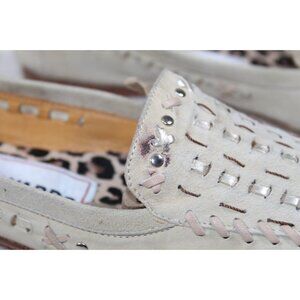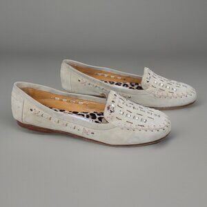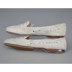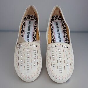 Warren Edwards Women's Suede Leather Size 9 Slip On Shoes Loafers Flat Moccasin beige ivory cream neutral. Excellent pre owned gently worn condition. Bottom soles have non skid added professionally. Slight rubbing wear from gas and brake pedal from driving, wear as pictured. Smoke/pet free home. Hard to see shoe size, fits a women's size 9 true to size, soft suede. Fast professional shipping. 9/25/2025