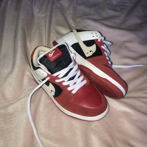 Warren Lotas Jason Dunks. I only wore these once after purchasing on here. Size 6Mens, or 7.5Womens. I wear a size 7Women’s and these fit me perfectly. They are a bit snugger than a typical 6M on me. I just don’t think that I’ll ever wear them unfortunately.