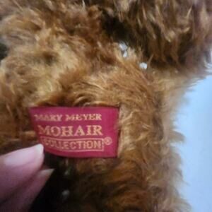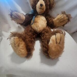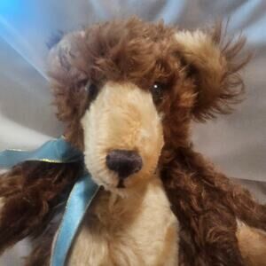 Warren Mohair Bear Mary Meyer Signed 15 in Brown Blue Ribbon Jointed B11
