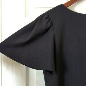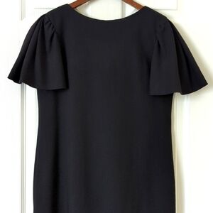 Warren Petites 80's Vintage Flutter Sleeve Back Buttoned Mini Shift Dress Black