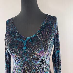 Warrior Within Designs Purple Echo Cinch Dress Velvet Paisley Scoop Neck Small S