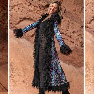 Cyan Liquid Light Baroness Reversible Velvet Coat - where Festival Fashion meets High Fashion...A collaboration with Tamo Designs & The Brotherhood of Light