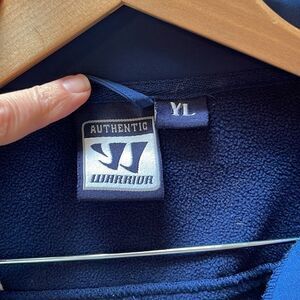 Warrior zip up jacket. Fleece lined. Zip pockets. Size youth large. Hockey.