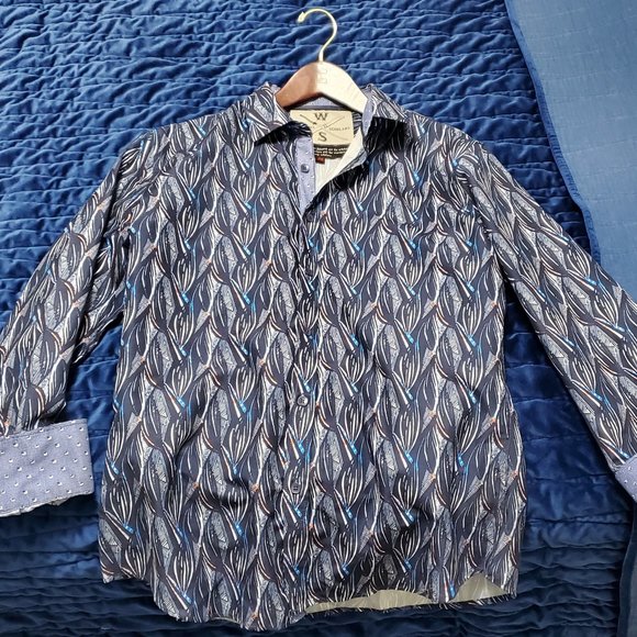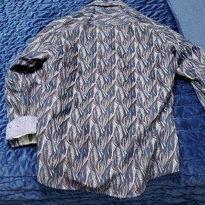 Blue with a cool pattern. Worn once, it was too large.