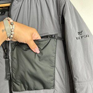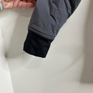 Color: Gray body with darker contrast chest pocket and hood