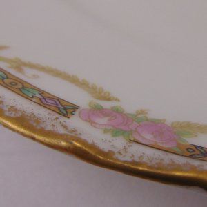 Beautiful vintage Warwick China USA. Believed to date in the 1930's pattern B2015 rare, scalloped edge with pink roses, swags geometric border. This piece matches pattern 9059 featuring the same design. No chips or scratches. Only small, visible blemishes are from manufacturing (see photos). 8.75"